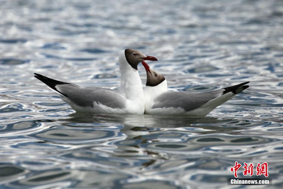 夏日里,鳳頭 和小 在西藏拉薩拉魯濕地國家級(jí)自然保護(hù)區(qū)水面上嬉戲。