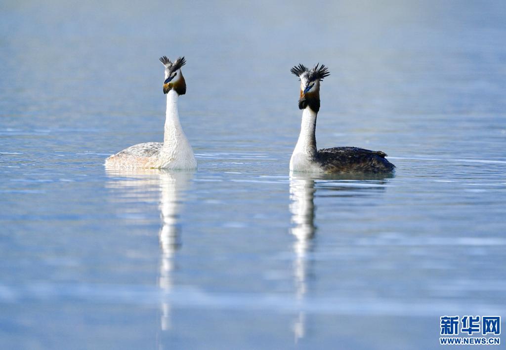 夏日里,鳳頭 和小 在西藏拉薩拉魯濕地國(guó)家級(jí)自然保護(hù)區(qū)水面上嬉戲。[詳細(xì)]