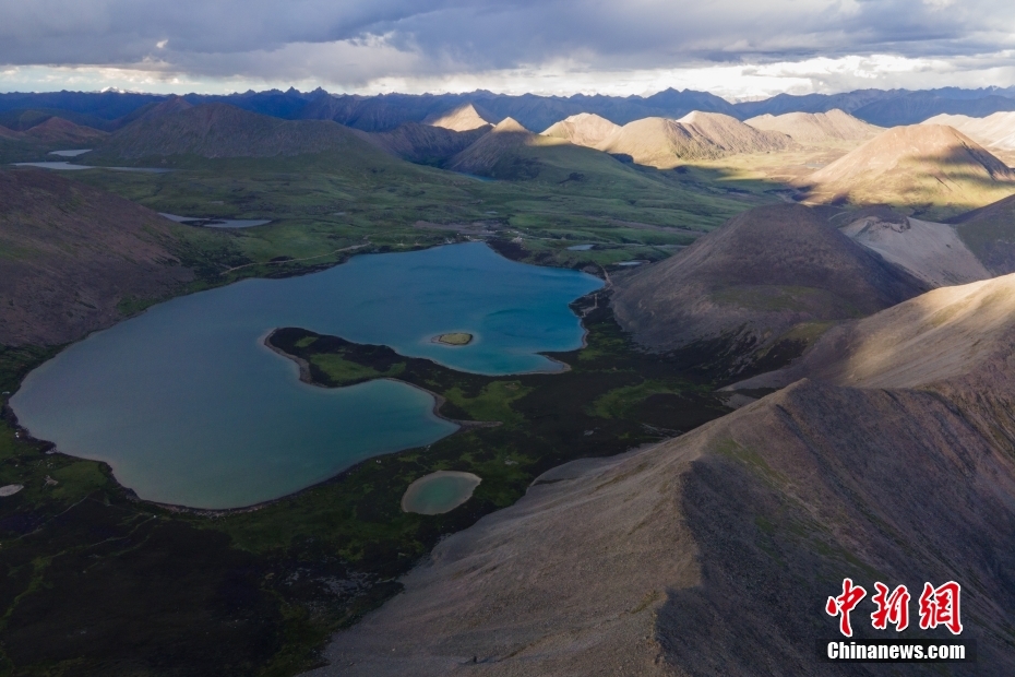 這是7月12日拍攝的普莫雍錯(cuò)景色(無(wú)人機(jī)照片)。新華社記者 孫瑞博 攝
