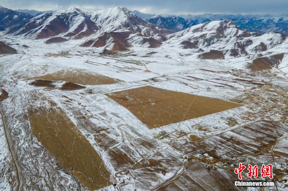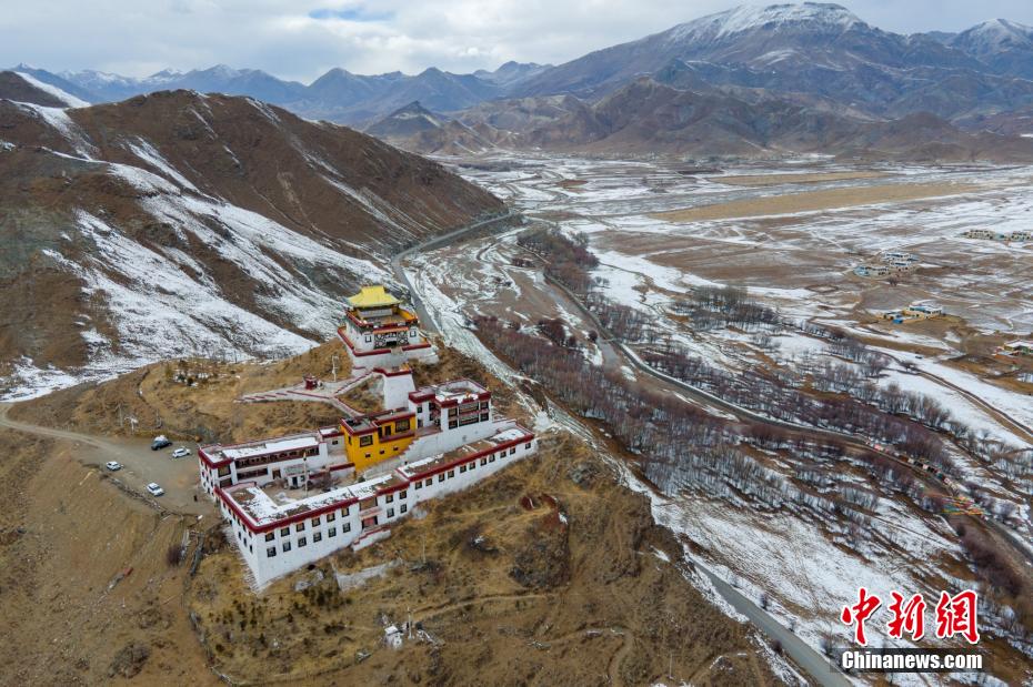 2月23日,航拍西藏林周縣楚杰寺雪后風(fēng)光。 澎波河是拉薩河的主要支流之一,位于拉薩市林周縣,是拉薩青稞主產(chǎn)區(qū)。近日,澎波河谷迎來(lái)大范圍降雪,河灘、農(nóng)田、村落、山谷等均被積雪覆蓋,猶如披上了一層“白紗”,一派高原冰雪風(fēng)光,十分壯美。江飛波 攝