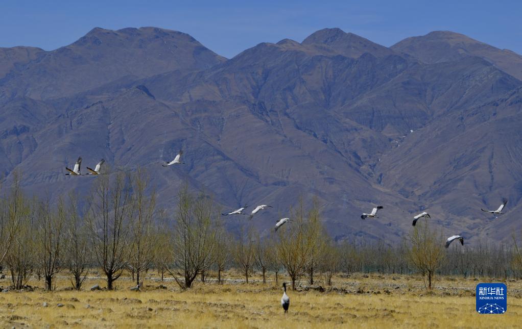 近期,眾多黑頸鶴活躍在西藏自治區(qū)日喀則市南木林縣境內(nèi)。南木林縣位于雅魯藏布江北岸,是雅江中游河谷黑頸鶴國家級自然保護區(qū)的核心區(qū)域。