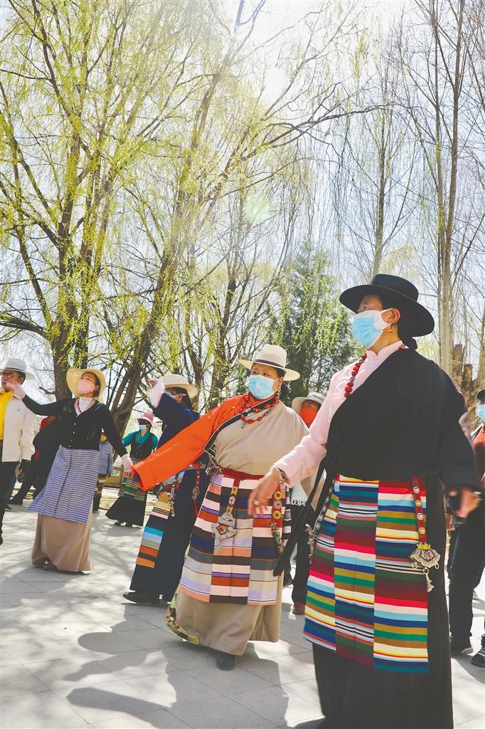 經(jīng)過(guò)春意潤(rùn)染的城市,處處呈現(xiàn)出純凈明朗的美。布達(dá)拉宮的金頂反射著耀眼的金光,布達(dá)拉宮廣場(chǎng)前綠草茵茵,人工湖旁的垂柳被和煦的春風(fēng)吹得飄飄揚(yáng)揚(yáng),羅布林卡里的古樹也開(kāi)始抽出鮮嫩的枝葉,繁華的八廓街上,三五成群的轉(zhuǎn)經(jīng)老人坐在路邊歇息……