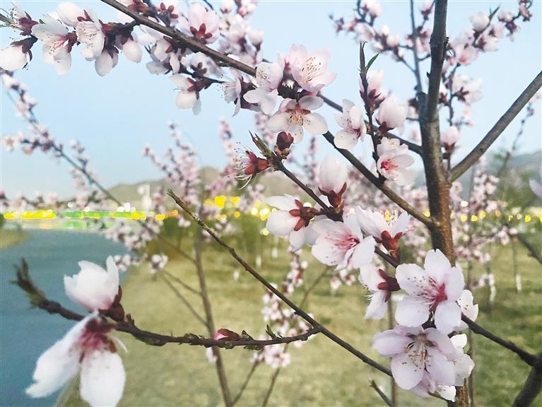 拉薩市中華文化公園里盛開(kāi)的桃花。