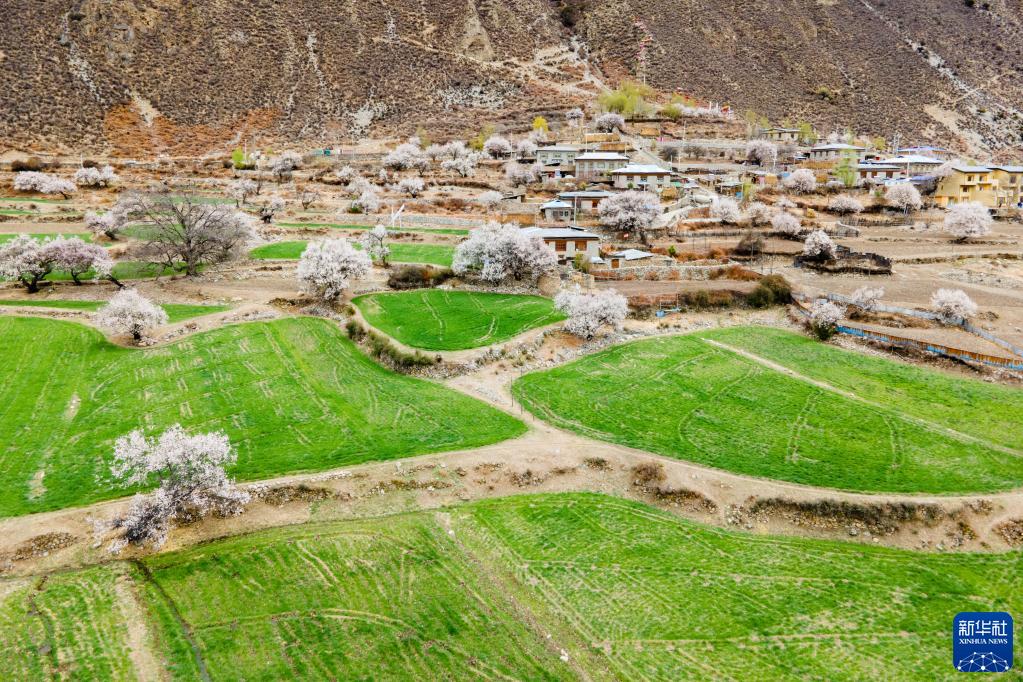 這是在那曲市嘉黎縣尼屋鄉(xiāng)拍攝的桃花(無(wú)人機(jī)照片,3月31日攝)。新華社記者 周荻瀟 攝