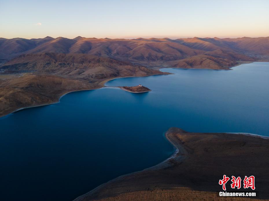 近日,西藏自治區(qū)山南市羊卓雍錯(cuò)(簡(jiǎn)稱羊湖),冬日由于沒有云層遮擋,湖水更顯深藍(lán)、孔雀藍(lán)。航拍視角下,湖水像巨大的寶石鑲嵌于高原大地,風(fēng)光壯麗。羊卓雍錯(cuò)藏語(yǔ)意為“碧玉湖”,湖面海拔4441米,與納木錯(cuò)、瑪旁雍錯(cuò)并稱西藏三大“圣湖”。圖為日落后的羊卓雍錯(cuò)風(fēng)光。 江飛波 攝