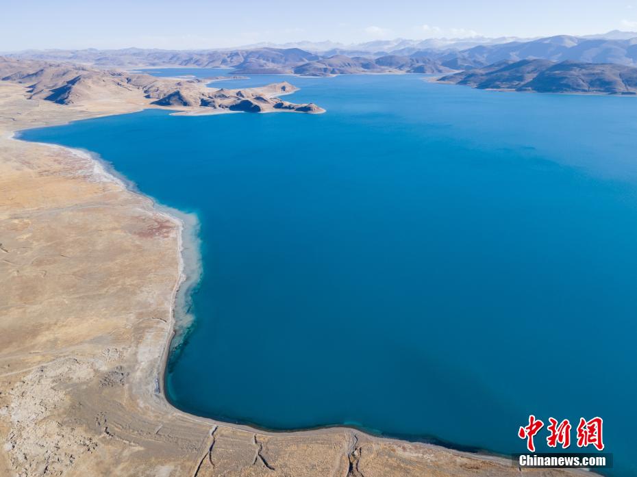 近日,西藏自治區(qū)山南市羊卓雍錯(cuò)(簡(jiǎn)稱羊湖),冬日由于沒有云層遮擋,湖水更顯深藍(lán)、孔雀藍(lán)。航拍視角下,湖水像巨大的寶石鑲嵌于高原大地,風(fēng)光壯麗。羊卓雍錯(cuò)藏語(yǔ)意為“碧玉湖”,湖面海拔4441米,與納木錯(cuò)、瑪旁雍錯(cuò)并稱西藏三大“圣湖”。圖為冬日羊湖湖水呈現(xiàn)為“寶石藍(lán)”。 江飛波 攝