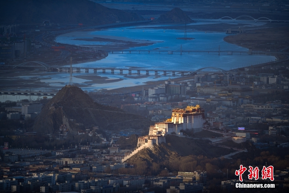 越過拉魯濕地眺望布達(dá)拉宮(2月24日攝,手機(jī)照片)。新華社記者 沈虹冰 攝