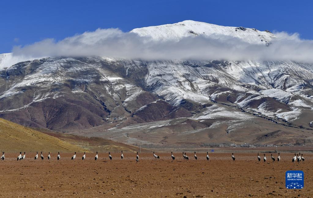 近日,西藏拉薩市各區(qū)縣迎來降雪。群山被白雪覆蓋,高原壯麗唯美。黑頸鶴、斑頭雁等翩躚起舞,拉薩河谷生機(jī)盎然。