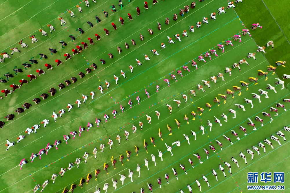 8月10日,演員在開(kāi)幕式上表演舞蹈(無(wú)人機(jī)照片)。新華網(wǎng) 旦增努布 攝