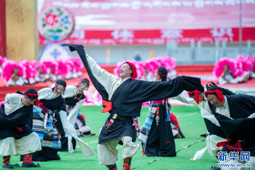 8月10日,演員在開(kāi)幕式上表演舞蹈。新華網(wǎng) 旦增努布 攝