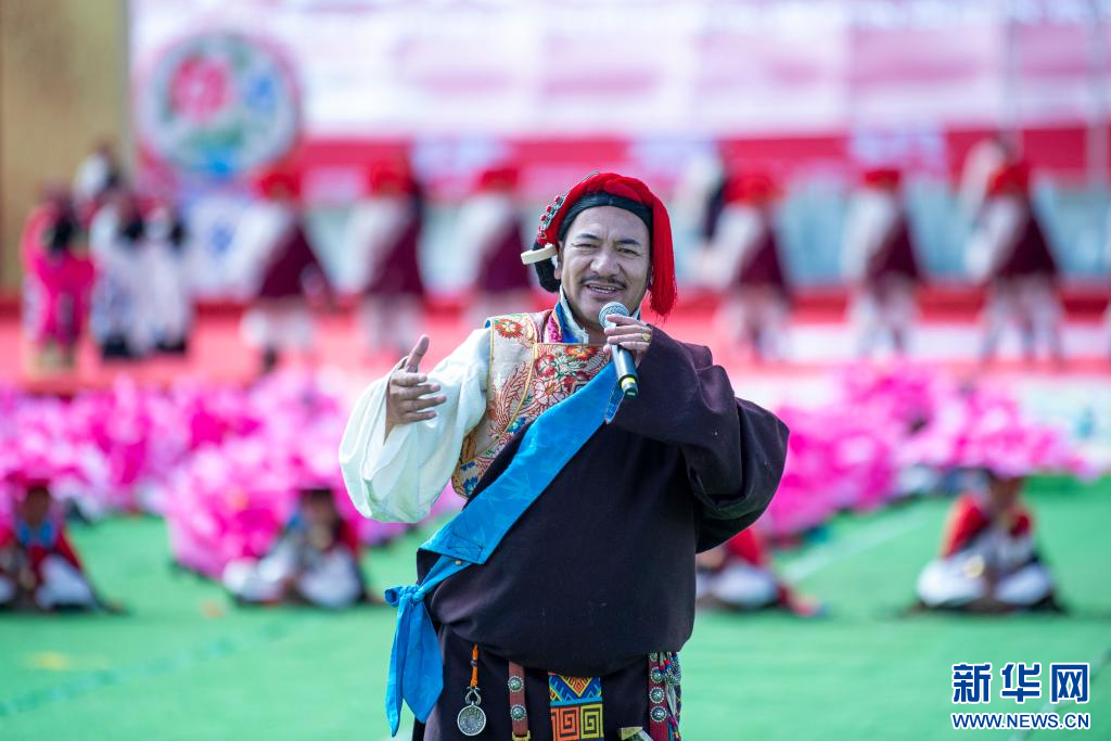 8月10日,歌手羅桑在開(kāi)幕式上唱歌。新華網(wǎng) 旦增努布 攝