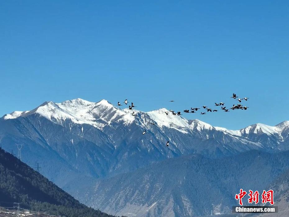 西藏米林迎來(lái)大批黑頸鶴越冬