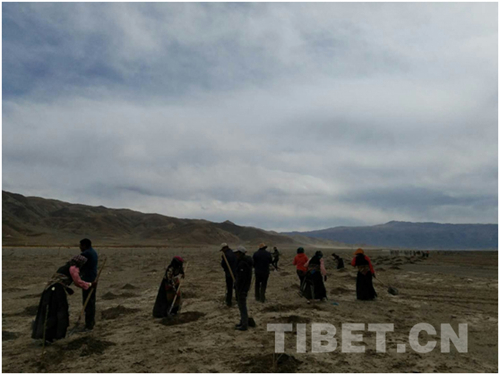 中國西藏網(wǎng)訊 仲春初四日,春色正中分。春天的拉薩河谷,萬物復(fù)蘇。在全民義務(wù)植樹的三月時節(jié),拉孜縣扎西崗鄉(xiāng)吉榮村路旁的沙地上,吉榮村駐村工作隊正在組織村民進行義務(wù)植樹,轟鳴的機器聲和歡快的勞動號子,驚醒了農(nóng)田里前來越冬的各類候鳥。