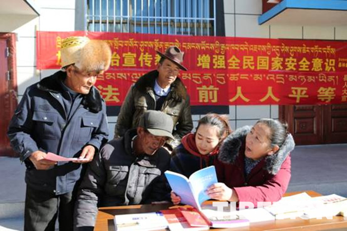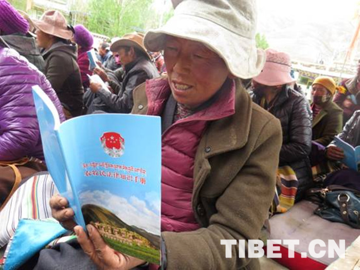 中國(guó)西藏網(wǎng)訊 “這種文藝活動(dòng)加普法宣傳好??!通過(guò)這些宣傳活動(dòng),我們老百姓對(duì)國(guó)家的利民惠民政策和相關(guān)法律法規(guī)有了更深的認(rèn)識(shí)?!币晃皇掷锬弥稇椃ā沸麄髻Y料的阿佳啦對(duì)記者說(shuō)。