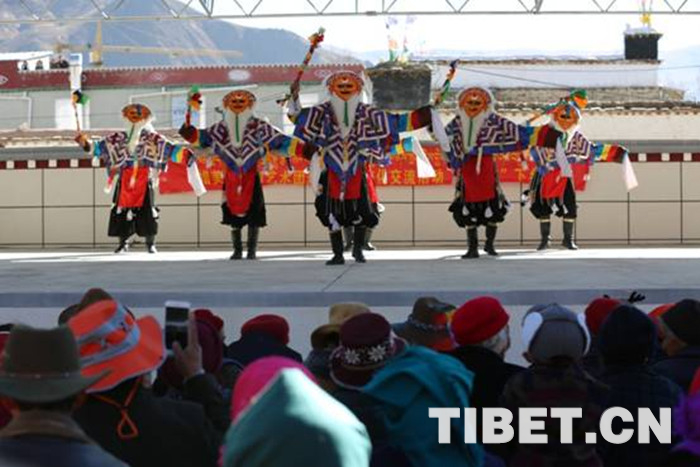 臺(tái)上,藏戲表演、男女聲獨(dú)唱、舞蹈等群眾喜聞樂(lè)見(jiàn)的節(jié)目讓演員們表演得淋漓盡致,精彩的節(jié)目使得臺(tái)下觀眾發(fā)出陣陣歡笑,整個(gè)院子響起了經(jīng)久不息的掌聲。