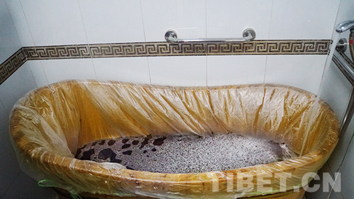 藏藥浴環(huán)境的準(zhǔn)備工作也頗為講究,首先要將浴池消毒,開(kāi)窗通風(fēng),而后關(guān)窗,熏燃藏香,調(diào)整室溫為20℃-25℃。