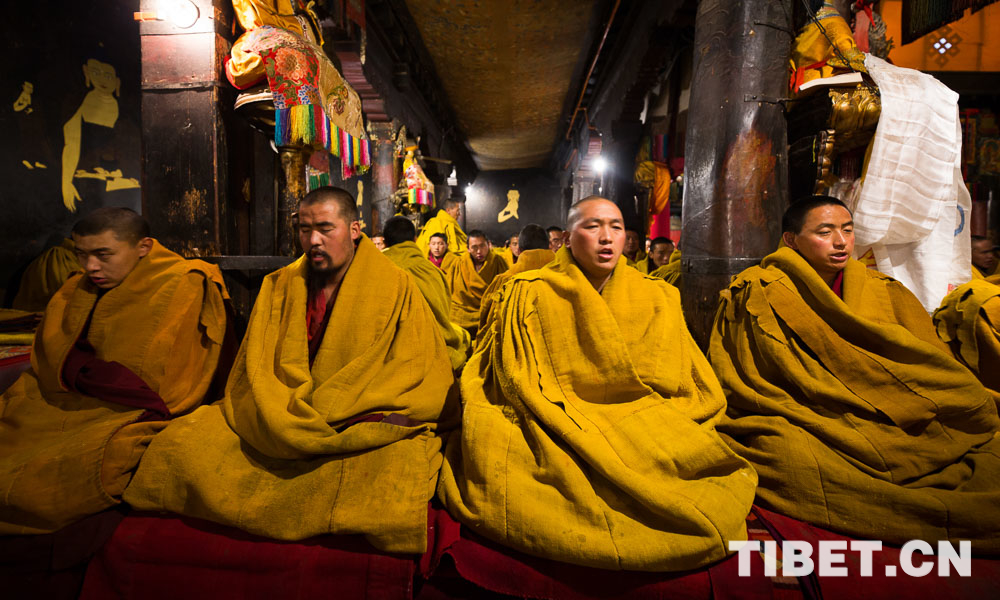 圖為扎寺僧人正在誦經。攝影:趙耀