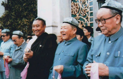 圖為習(xí)仲勛(左一)、十世班禪(中)、鄧穎超(右一)、參加中國(guó)藏語(yǔ)系高級(jí)佛學(xué)院成立大會(huì)。圖片來(lái)源:人民日?qǐng)?bào)