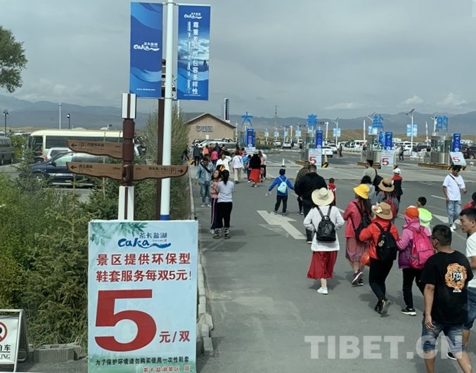 2019年8月5日,記者在茶卡鹽湖景區(qū)看到,游客們正在井然有序地排隊(duì)等候購票進(jìn)入園區(qū),道路交通秩序良好,停車場車輛整齊停放,“環(huán)保型鞋套服務(wù)5元一雙”的租賃標(biāo)識十分醒目,此外,咨詢服務(wù)區(qū)、票務(wù)服務(wù)區(qū)、游客集散地、產(chǎn)品展銷區(qū)等八個(gè)功能區(qū),為游客們提供了旅游餐飲、旅游互動體驗(yàn)等多位一體的旅游綜合服務(wù)。