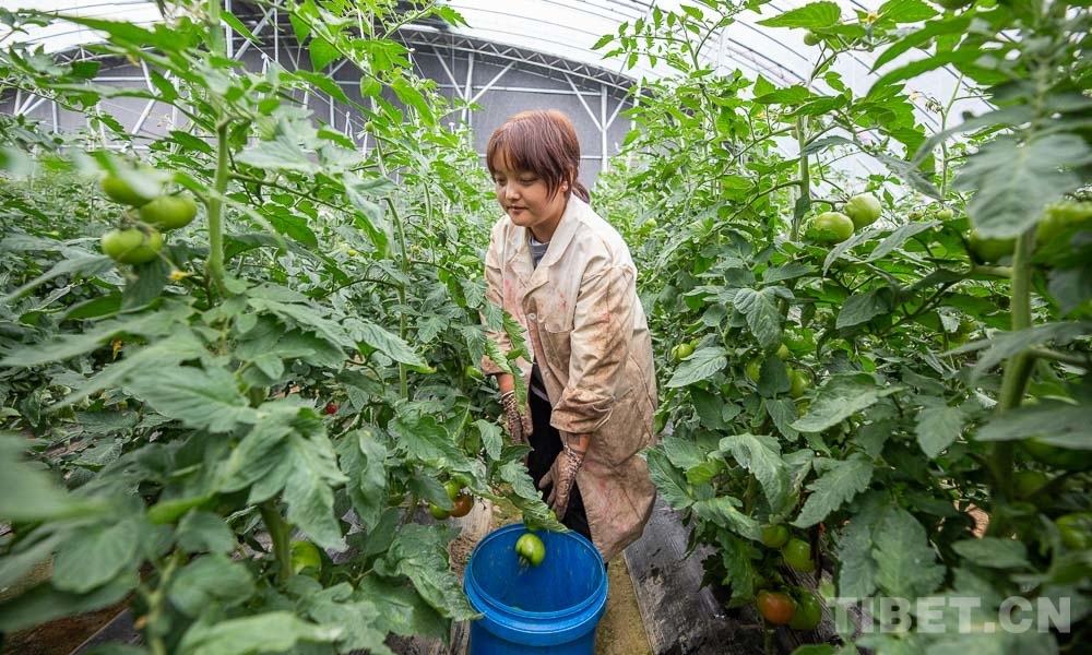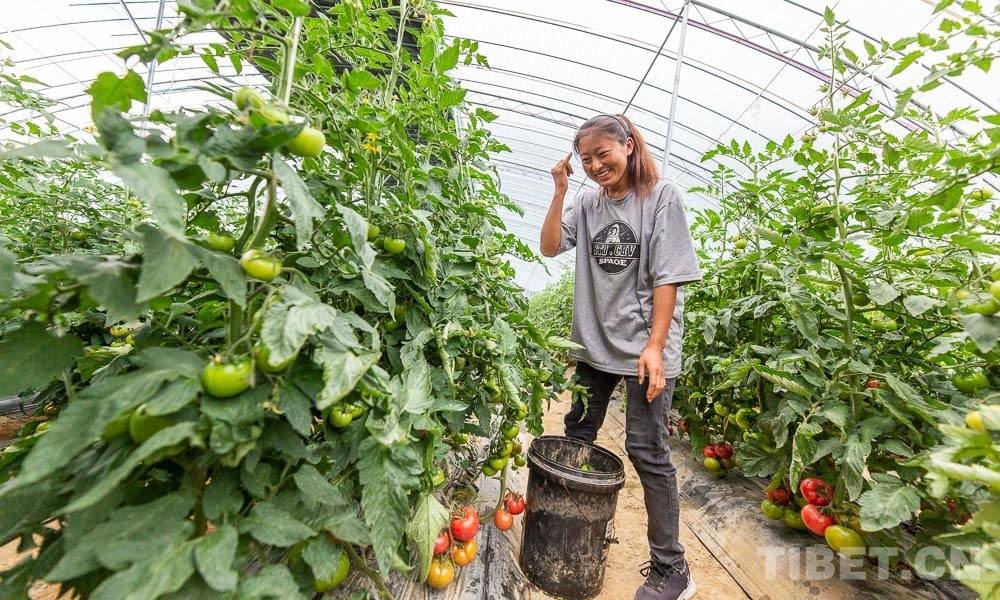 “公司非常注重對我們的培養(yǎng),手把手地教技術(shù)、傳經(jīng)驗。我去年9月份來這里工作,用了3、4個月的時間就學(xué)會了技術(shù),開始單獨管理大棚了?!备裆W楷斒炀毜卦诿恳恢攴验g穿梭,摘除多余的葉子和壞果。觀光園成立之初,在其他單位工作了2年的格桑卓瑪回到村里當(dāng)上了觀光園的一名技術(shù)人員,開始學(xué)習(xí)種植技術(shù)。如今,格桑卓瑪學(xué)著觀光園的樣子在家里建了一個小型的蔬菜大棚,并帶回去秧苗進(jìn)行種植,種出來的蔬菜自給自足。