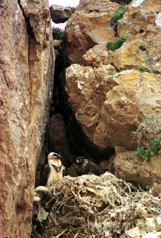 科考人員在科考中發(fā)現(xiàn),在扎西多半島西北角突兀懸崖峭壁上有一個很大的胡兀鷲雜草屋,只見雌鳥飛出飛進,在給4個月大小的雛鳥喂食。這種頭頂和后頸為白色、頭頂周圍有一圈黑羽,長有胡須、腹部為褐色的胡兀鷲,體長1米多。