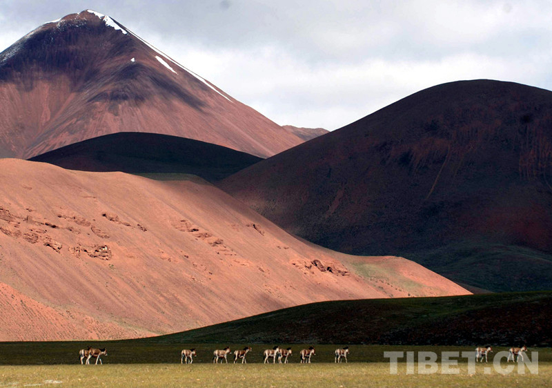這是棲息在羌塘國(guó)家級(jí)自然保護(hù)區(qū)的國(guó)家一級(jí)保護(hù)動(dòng)物藏野驢,在悠閑地排隊(duì)行走(唐召明2014年攝)