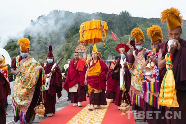 圖為十一世班禪步入噶舉寺 攝影:鄭朔
