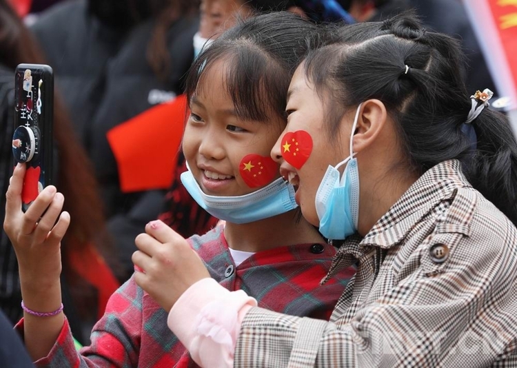 圖為在演出現(xiàn)場(chǎng)用手機(jī)留影的小朋友