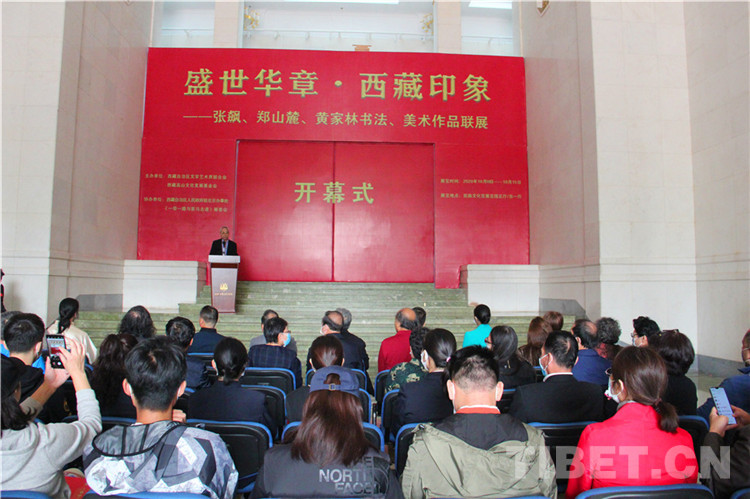 中國西藏網(wǎng)訊 10月10日,“盛世華章?西藏印象——張飆、鄭山麓、黃家林書法、美術(shù)作品聯(lián)展”于北京民族文化宮開幕。來自中國書法家協(xié)會、中國美術(shù)家協(xié)會、西藏自治區(qū)文學(xué)藝術(shù)界聯(lián)合會等單位的嘉賓及藝術(shù)家50余人出席開幕式并參觀展覽。