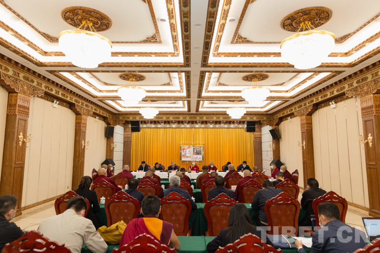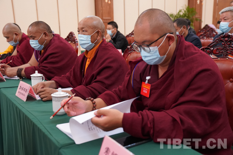 十一世班禪表示,第四次會長會議以來佛協(xié)西藏分會深入學習貫徹中央第七次西藏工作座談會精神,深入學習西藏自治區(qū)黨委九屆八次全會精神,召開了第十一屆理事會第二次常務理事會會議,舉辦了第五屆藏傳佛教講經闡釋交流會、理事培訓班,舉行了2020年度格西拉讓巴立宗答辯暨頒證儀式和2021年度夏季預考等,各項會議活動和諧、順利、圓滿。