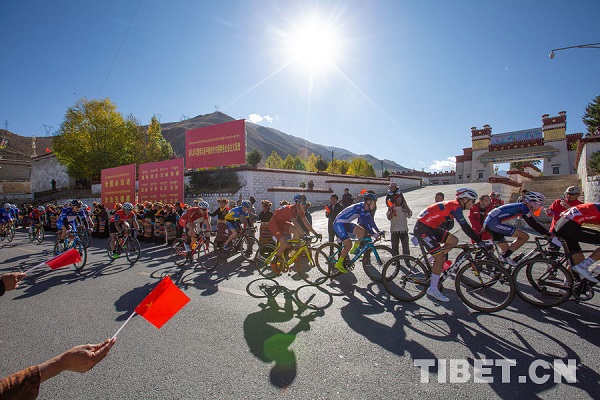 此刻的他們,已卸下兩個比賽日的緊張情緒,輕松地從西藏會展中心廣場出發(fā),騎行十公里抵達(dá)終點(diǎn)。這段榮譽(yù)騎行,他們接受著沿途觀眾的矚目、哈達(dá)和歡呼。