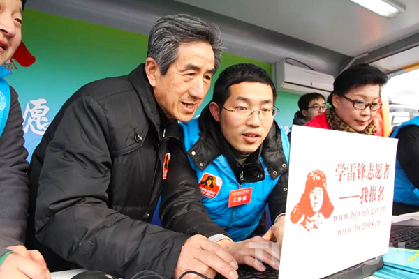 圖為葉如陵在學雷鋒志愿者活動中