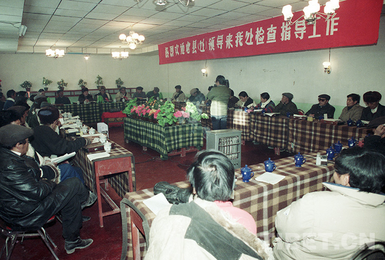 圖為西藏那曲地區(qū)基層政權(quán)建設(shè)工作現(xiàn)場(chǎng)會(huì)在文部辦事處召開(kāi)(唐召明1989年12月攝)
