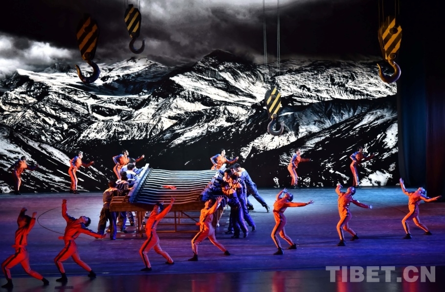 圖為《圓夢(mèng)》歌舞劇在國(guó)家大劇院的演出劇照——青藏鐵路成功鋪軌(唐召明2015年10月13日攝)