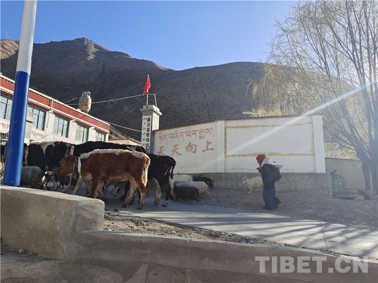 去年,村委會(huì)搬進(jìn)了新的大樓,村委會(huì)便是她經(jīng)?!盎钴S”的地方,她喜歡駐村工作隊(duì),隊(duì)員們也喜歡跟她交流。在咿咿呀呀、比比劃劃中揣摩她的想法。她也是一個(gè)愛美的“阿佳”,每當(dāng)看到我們駐村工作隊(duì)的小姑娘涂口紅時(shí),從她的眼神中流露出羨慕,小姑娘們也為她涂上口紅,對(duì)著鏡子,次仁玉珍高興得像個(gè)“孩子”。她是我們的貼心人,總惦記著我們的冷暖,就像我們的“母親”。冬天來臨,她到山上撿柴、撿牛糞送給我們。村里停電,她擔(dān)心我們不習(xí)慣,就跑來陪伴我們。駐村工作隊(duì)也像家人一樣待她,每次吃好吃的東西,便把次仁玉珍叫到村委會(huì)一同享用。得知次仁玉珍病了,駐村工作隊(duì)買了藥品、水果去看望她,一來二去,我們也就成了最鐵的好朋友。