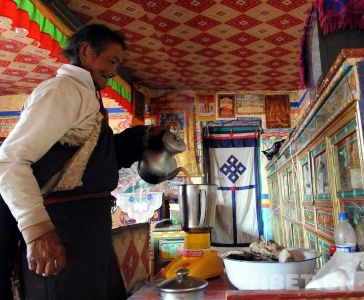 隨著社會的進步、生活水平的提高和電力走入高原人家,不少人開始使用電動攪拌機打酥油茶,這一傳統(tǒng)的飲食習俗被賦予了現(xiàn)代的操作方式。