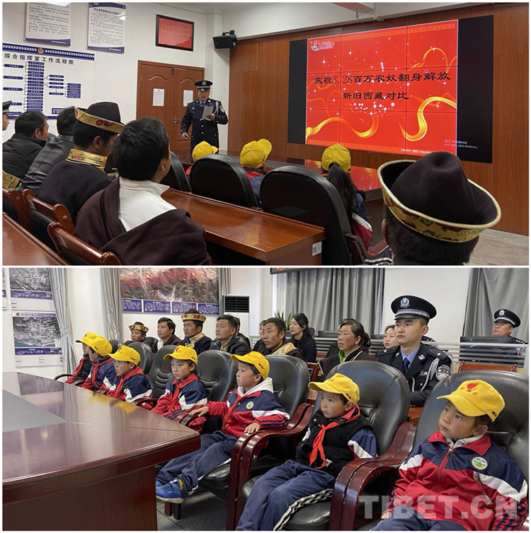 儀式結(jié)束后,派出所邀請學(xué)校師生及群眾代表參觀警營,民警貢秋羅布還為學(xué)生們上了一堂生動的西藏百萬農(nóng)奴解放歷史課,講解了西藏百萬農(nóng)奴在中國共產(chǎn)黨的帶領(lǐng)下,打破政教合一的封建農(nóng)奴制的枷鎖;講述了短短幾十年跨越上千年的社會主義新西藏的發(fā)展奇跡。課后,小學(xué)生多吉說,“從這堂課里,知道以前的小孩多么可憐,現(xiàn)在我們有了警察叔叔和老師們的幫助,一定要好好學(xué)習(xí),長大以后報效祖國?!?/p>