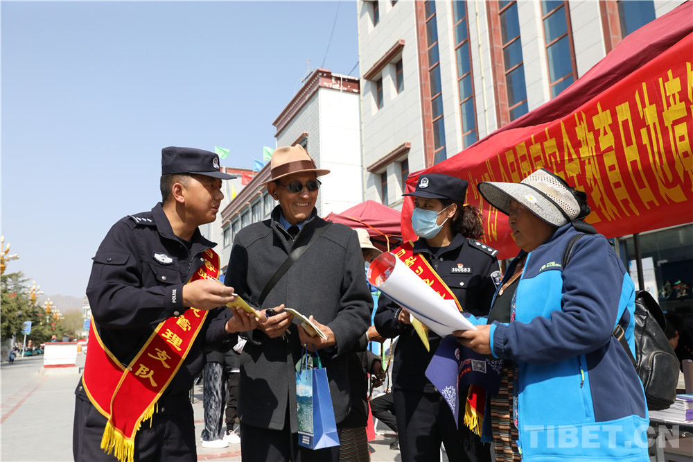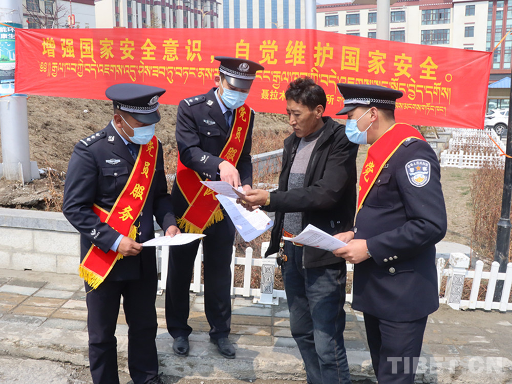 “12339,是國家安全機關(guān)受理公民和組織舉報電話。這條熱線是由國家安全部設(shè)立的,為了方便公民組織向國家安全機關(guān)舉報行為或線索?!痹谖鞑厝湛t市的街頭,日喀則邊境管理支隊民警達娃卓嘎為過往群眾講解“全民國家安全日”的相關(guān)知識。