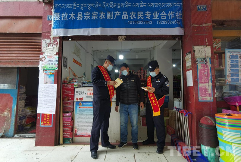 “當(dāng)你們遇到有危害公共安全的行為時,一定要第一時間舉報。”聶拉木出入境邊防檢查站民警達(dá)瓦次仁一邊給工人發(fā)宣傳單一邊說道。