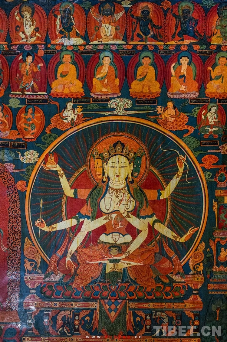 “古格壁畫給我?guī)砗芏嗬L畫靈感。”古格壁畫打開了巴桑次仁唐卡繪畫新的大門。