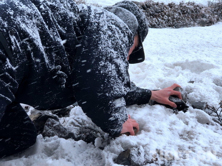 西藏日喀則邊境管理支隊貢當(dāng)邊境派出所拉青拉的執(zhí)勤民警開始一天的巡邏工作。巡邏點位要穿越較厚的積雪區(qū),攀爬被冰雪覆蓋的陡坡,一路危險重重,為了不增加負(fù)擔(dān),除了必要的警用裝備,大家都是最大限度的輕裝簡行,連干糧和水都是定量攜帶、定時食用。巡邏車碾冰軋雪,在茫茫雪海留下一道清晰的車轍,一路荒無人煙,積雪越來越厚。在距離界樁不到兩百米的地方,巡邏車被數(shù)十厘米厚的積雪攔住去路,大家只好下車徒步前進(jìn),由于風(fēng)大路險,民警們只能彎著腰手腳并用匍匐著前行,隊伍里只能聽到沉重的喘息聲和腳踏積雪咯吱聲。一百多米的路走了二十分鐘,最終到達(dá)界樁,大家來不及休整,立刻展開觀察、警戒、檢跡記錄。積雪覆蓋的界樁旁,巡邏民警整齊列隊,面向國旗,緊握右拳,朝著國旗莊嚴(yán)敬禮:“邊境有我,請祖國放心!”