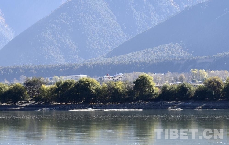 圖為2020年11月拍攝的一架飛機(jī)從西藏自治區(qū)林芝市米林機(jī)場(chǎng)起飛 攝影:王媛媛