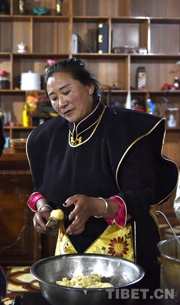 圖為2020年11月,工布新年“古突”夜,一位藏族婦女在制作“結(jié)達(dá)” 攝影:王媛媛