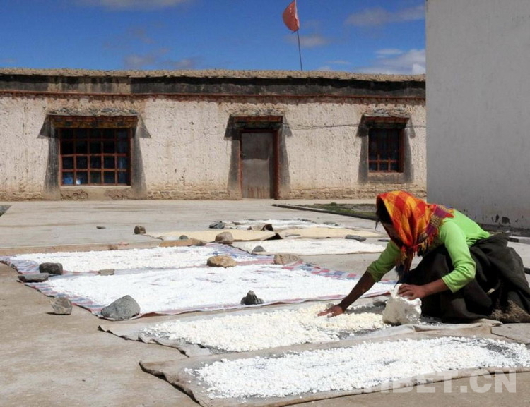 申扎縣申扎鎮(zhèn)三村成立了專業(yè)合作經(jīng)濟(jì)組織,大家分工明確,各司其職。這是分工撿拾攤曬牛糞燃料的藏族婦女(唐召明2009年攝)