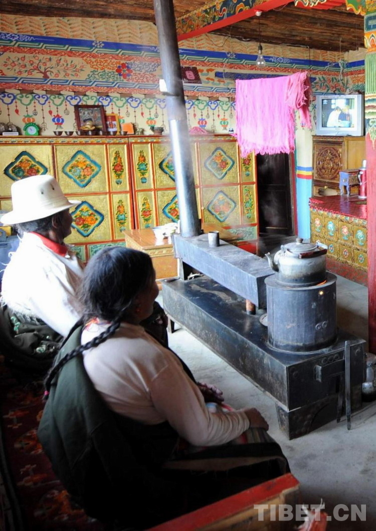 我們來(lái)到二村,時(shí)任村黨支部書記的桑旦早早地就迎候在村口,給人一種熱情而沉著的印象。他把我們領(lǐng)進(jìn)村文化室,屋里牛糞燒得正旺,暖烘烘的。桌子上擺有二村的特色風(fēng)干牦牛肉,桑旦將熱氣騰騰的酥油茶端來(lái)。我們一邊細(xì)細(xì)品嘗牦牛肉的獨(dú)特風(fēng)味,一邊與桑旦攀談起來(lái)。桑旦話語(yǔ)雖不多,但每說一句,總能道出二村昔日的貧窮與今日走上安康生活的感慨。