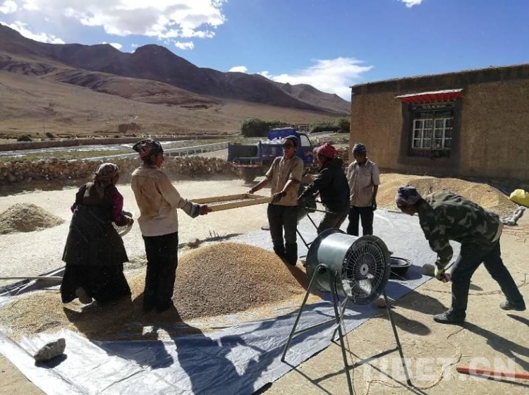 工作隊(duì)根據(jù)在前期深入群眾家中和田間地頭了解到的“孤困寡”等人群在秋收中存在勞動(dòng)力緊缺等問(wèn)題,號(hào)召全體駐村隊(duì)員和村黨員干部組成青稞秋收黨員志愿服務(wù)隊(duì)自2017年9月13日起,對(duì)村孤寡戶、缺乏勞動(dòng)力戶及特困戶進(jìn)行秋收幫扶,僅用3天就完成困難戶的收割,解決了他們勞力緊缺的燃眉之急。9月底,拉木堆村的秋收工作已經(jīng)進(jìn)入收尾階段。村民們都說(shuō),今年因?yàn)橛惺崭顧C(jī),收割時(shí)間比去年縮短了兩天。當(dāng)全村408畝青稞全部收割完畢,堆置田地中晾曬。聽說(shuō)今年糧食產(chǎn)量預(yù)計(jì)將比上年增收10%左右,再創(chuàng)新高,從干部到群眾,人人樂(lè)開了花。