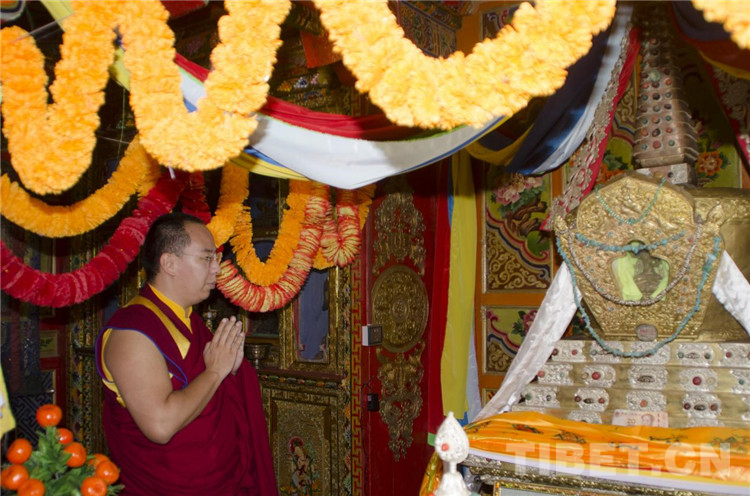 圖為班禪在六世格達活佛靈塔前 攝影:歐帆