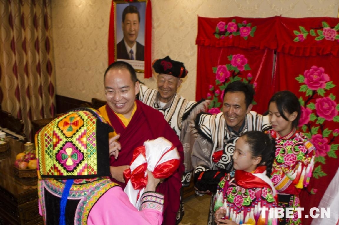 調(diào)研期間,班禪來(lái)到松潘縣進(jìn)安鎮(zhèn)居民王永明的家中。班禪在一家人的圍繞中,仔細(xì)詢問(wèn)家庭收入、生活情況并親切地向他家的小女兒說(shuō):“要繼續(xù)努力學(xué)習(xí),將來(lái)努力報(bào)效祖國(guó),好不好?”班禪隨后表示,現(xiàn)在的生活越來(lái)越好,黨和政府為大家提供了很多機(jī)會(huì),機(jī)遇多、機(jī)會(huì)多。能趕上這么好的一個(gè)偉大時(shí)代,也是我們大家的福報(bào)。