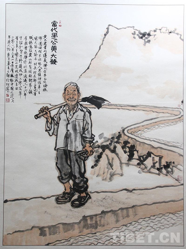 圖為中國(guó)畫作品《黃大發(fā)——遵義市播州區(qū)平正仡佬族鄉(xiāng)團(tuán)結(jié)村名譽(yù)村支書》,作者錢文觀
