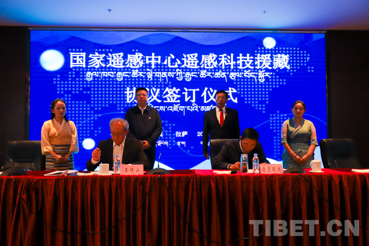 會上,科技部國家遙感中心與西藏自治區(qū)科學(xué)技術(shù)廳簽署了《關(guān)于遙感科技援藏的戰(zhàn)略合作協(xié)議》,并進(jìn)行了國家遙感中心西藏分部授牌儀式。
